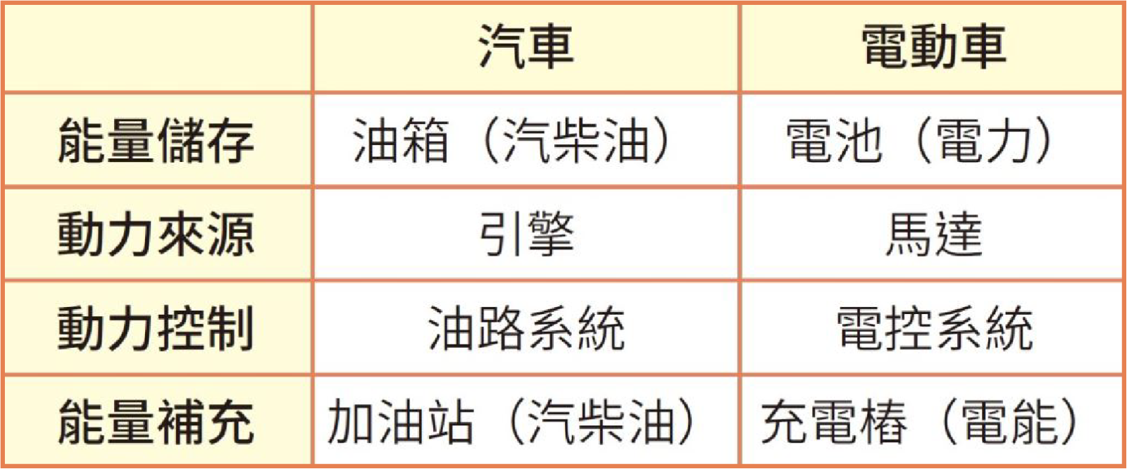 ▲表一:汽車和電動車的動力系統比較。資料來源/作者提供