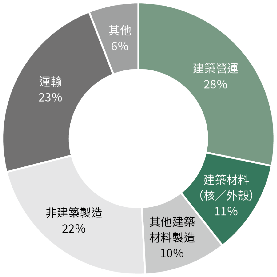 溫室氣體的排放自工業革命以來持續地增加,使得地球的平均氣溫逐年上升,也導致了極端氣候、環境、生態系統的變化。而營建產業更是全球溫室氣體排放的主要元兇之一(約占 39%),甚至高於工業和運輸業的總和(圖一)。營建產業的碳排放除了包含建築物的建造、維運使用,還包含拆除等產業鏈的碳排放,也讓我們意識到恣意地消耗自然資源及使用大量的能源來生產建築材料,對環境來說既不永續也不友善。