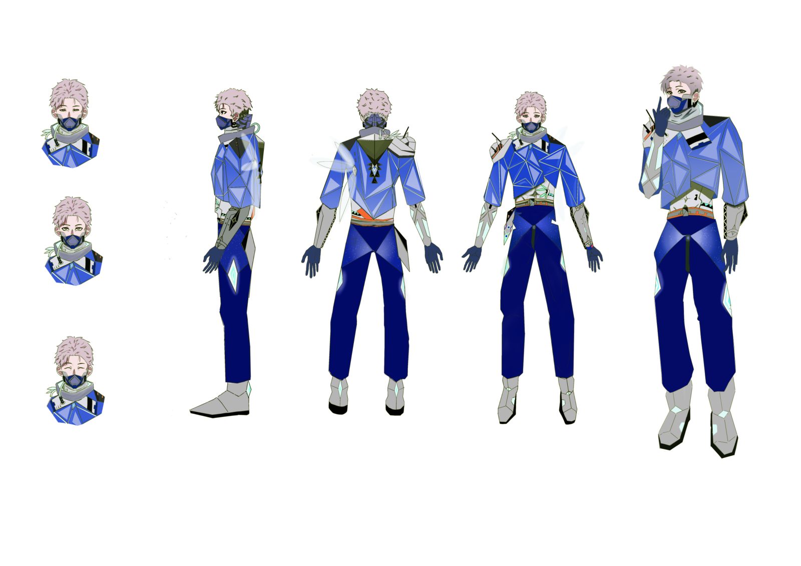 參賽者針對題目的要求,發想了相當詳盡的太空移民藍圖,包含未來被發現的新適居星球、空氣的組成、人類對於該環境的反應等,讓評審們可以清楚了解這件作品生成的背景條件,使得此作品呈現出相當具說服力的視覺成果,是件成功的創作。角色設計呈現上,藍色的主體色反映出該星球的主要環境,菱格紋設計亦帶來未來感的科技感受,而角色背後的小翅膀則為冰冷的科技氛圍帶來生命感,此外,頭髮顏色更讓整體冷色調有了畫龍點睛的視覺焦點。綜合整體而言,這是件相當成熟,且具有未來發展性的角色設計作品。