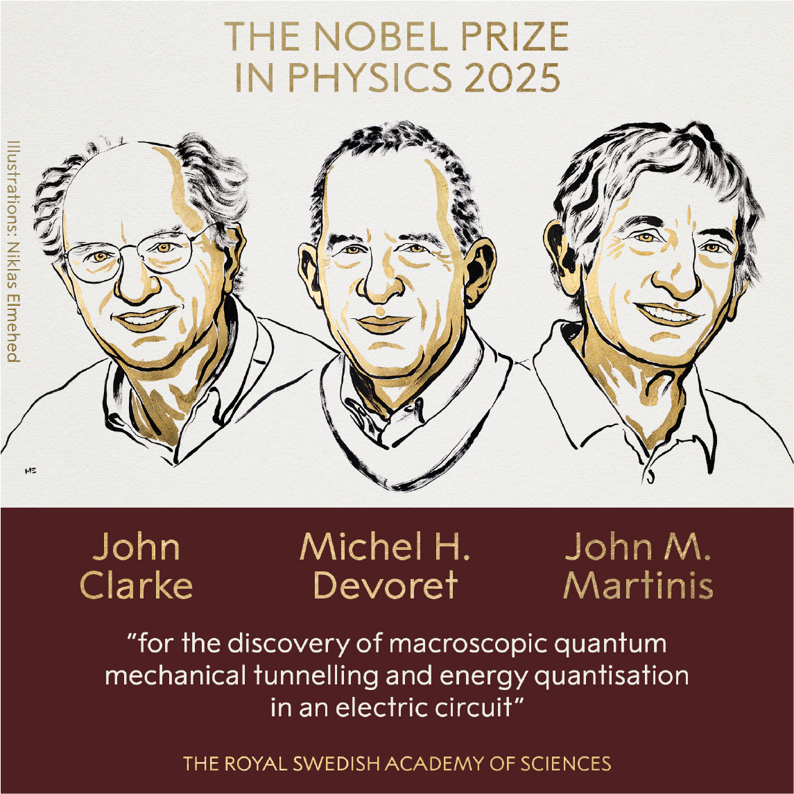 ▲圖一:2025 諾貝爾物理學獎由約翰.克拉克、米歇爾.德沃雷和約翰.馬丁尼斯獲得。圖片來源/Nobel Prize, Facebook
