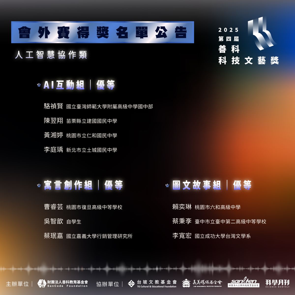 2025第四屆善科科技文藝獎〖會外賽〗【得獎名單】